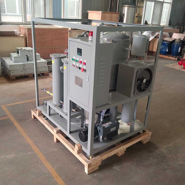 真空濾油機(jī)是根據(jù)水和油的沸點(diǎn)不同而設(shè)計(jì)的,它由真空加熱罐、精濾器、初濾器、真空泵、排油泵以及電氣柜組成的。真空泵將真空罐內(nèi)的空氣抽出形成真空,外界油液在大氣壓力的作用下,經(jīng)過(guò)油入口管道進(jìn)入初濾器,清除較大的顆粒,然后進(jìn)入加熱罐內(nèi)經(jīng)過(guò)加熱到40~75℃的油進(jìn)入真空罐內(nèi),油中的水份急速蒸發(fā)成水蒸氣并連續(xù)被真空泵吸入油水分離器內(nèi),分離器內(nèi)的水蒸氣經(jīng)冷卻后還原成水后放出。在真空加熱罐內(nèi)的油液被排油泵排入精濾器通過(guò)濾芯將微粒雜質(zhì)過(guò)濾出來(lái)。從而完成真空過(guò)濾迅速除去油中雜質(zhì)、水份、氣體的全過(guò)程,使?jié)崈舻挠蛷某隹谔幣懦鰴C(jī)外。